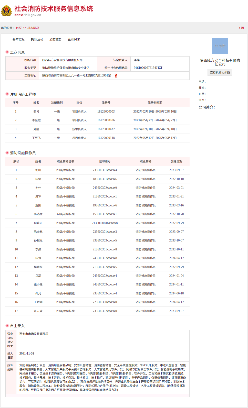 根据消防法律法规、技术标准,为客户提供消防技术方面的咨询,在技术上协助客户销案重大火灾隐患、通过消防验收、完善消防管理、整改火灾隐患等:消防安全形势分析评估。